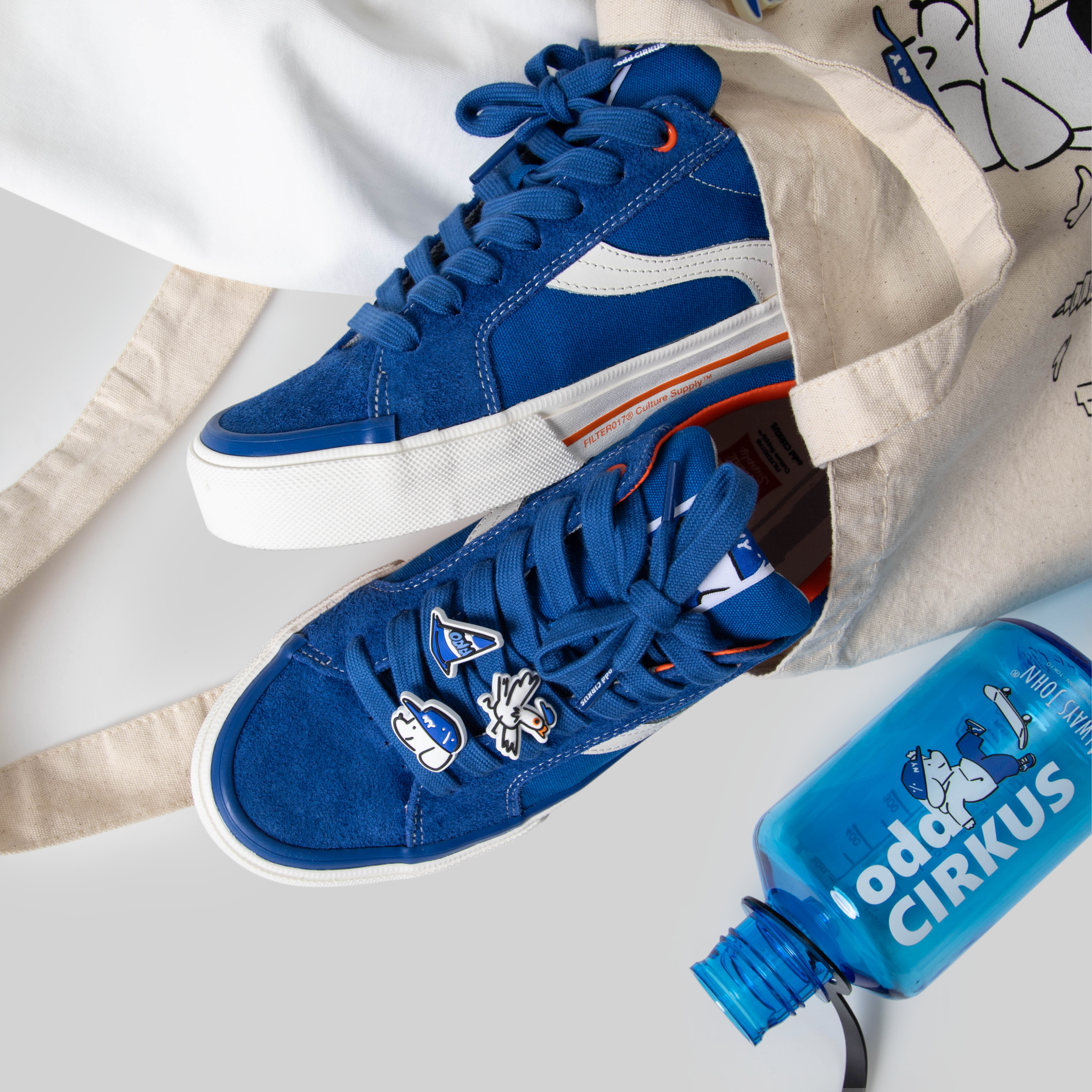 此次以odd CIRKUS日本總設計師西浦良一量身打造的經典鞋款-ASTLEY LOW為基礎。鞋面選用軍規等級的氣流紡帆布與長毛麂皮,增添耐磨與耐用度,異材質的碰撞與主題圖像的細節呈現,營造多層次的視覺感受。鞋墊採優質的PU灌注材質,能提供良好的支撐與緩衝性能,使腳感紮實、柔軟兼具。雙材質的鞋底設計強化抓地力,複合車用輪胎等級高硬度橡膠,充分強化避震和保護效果。