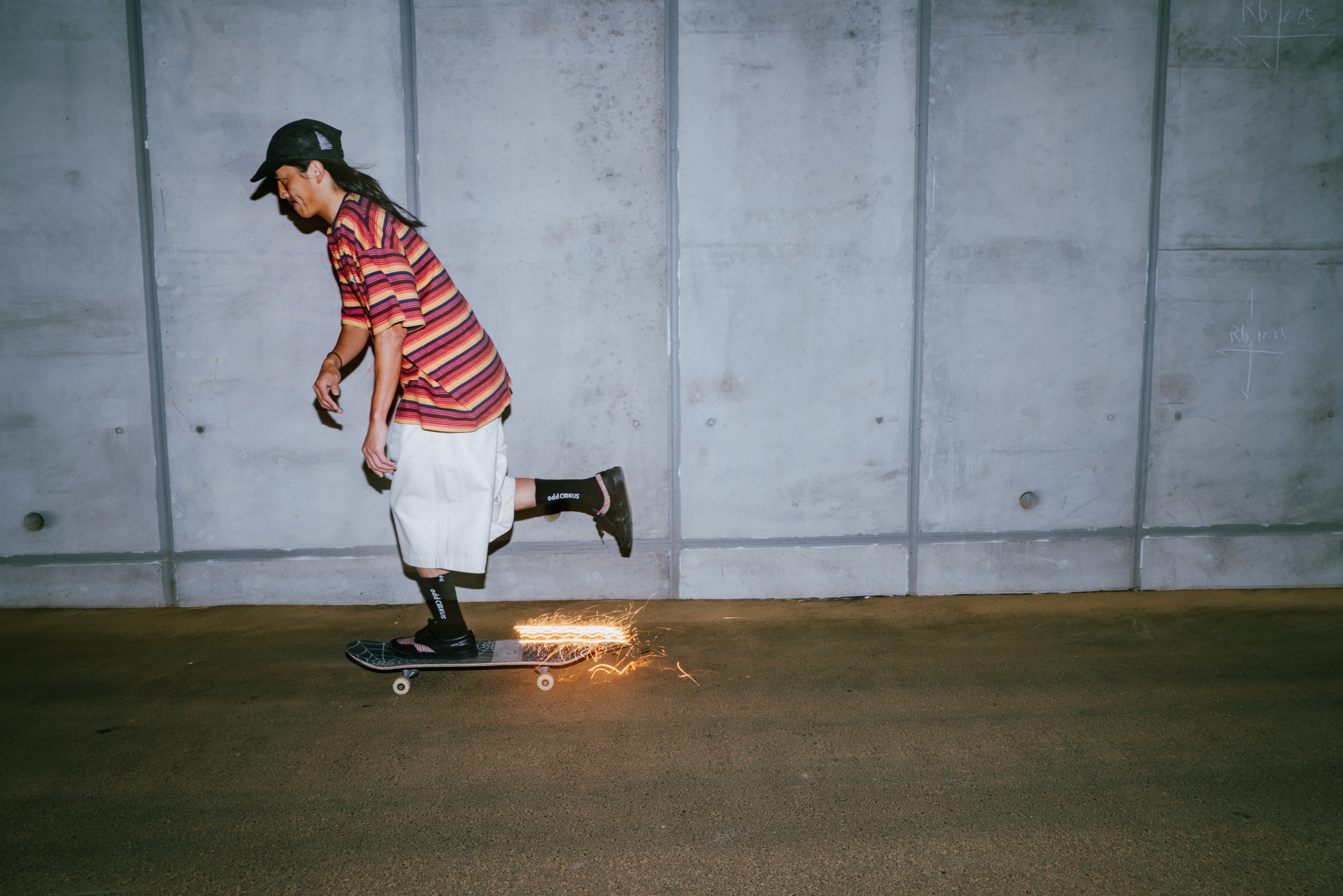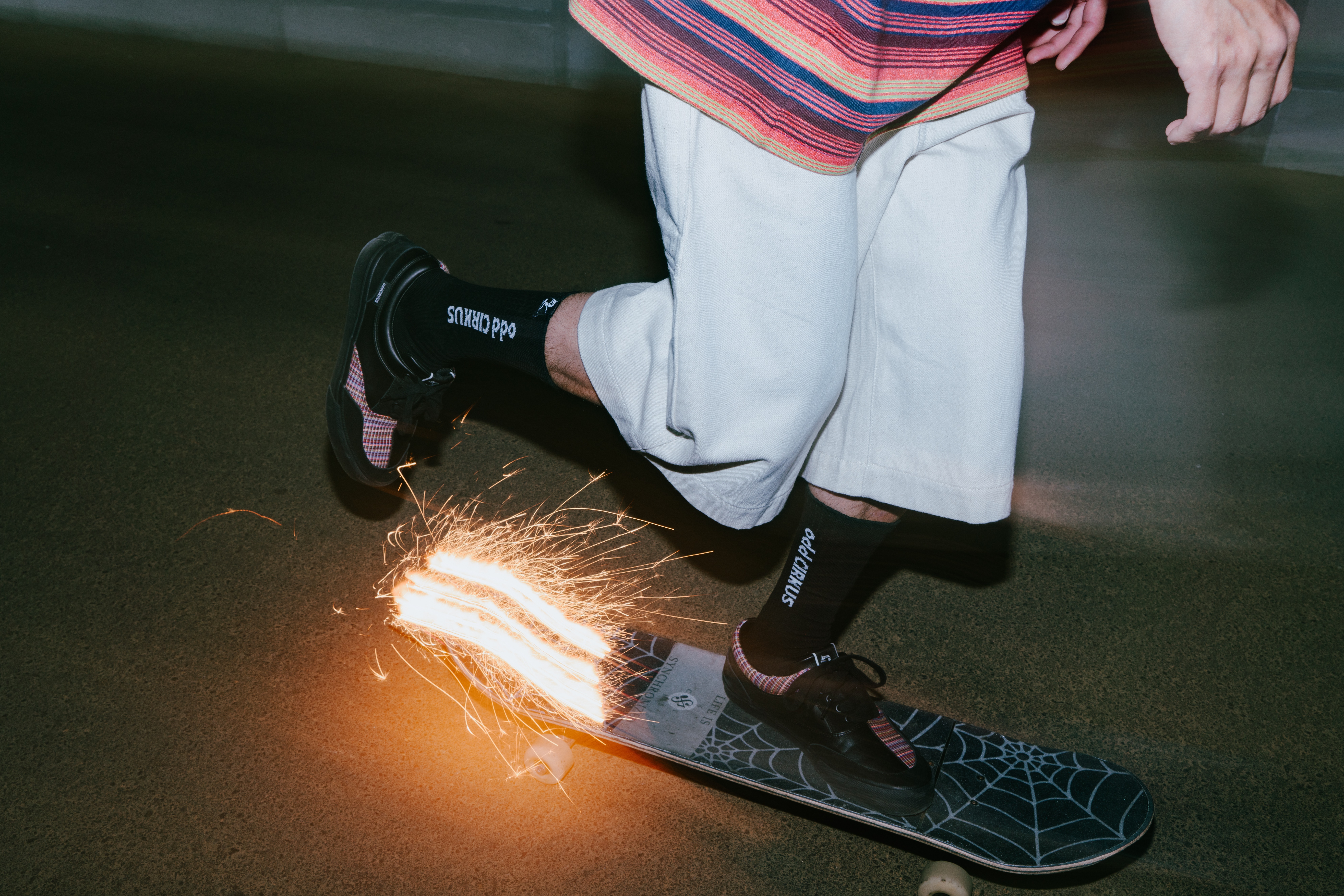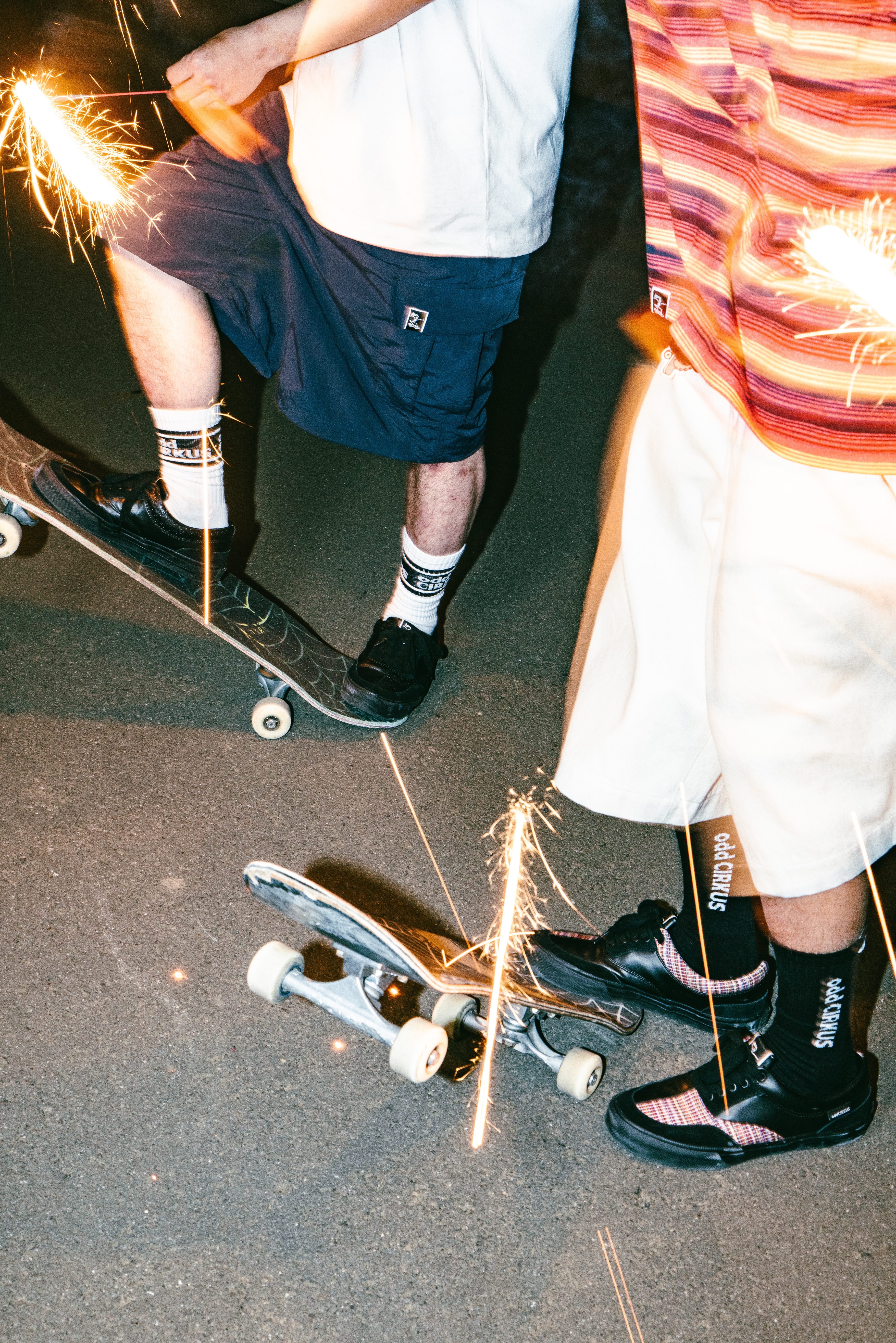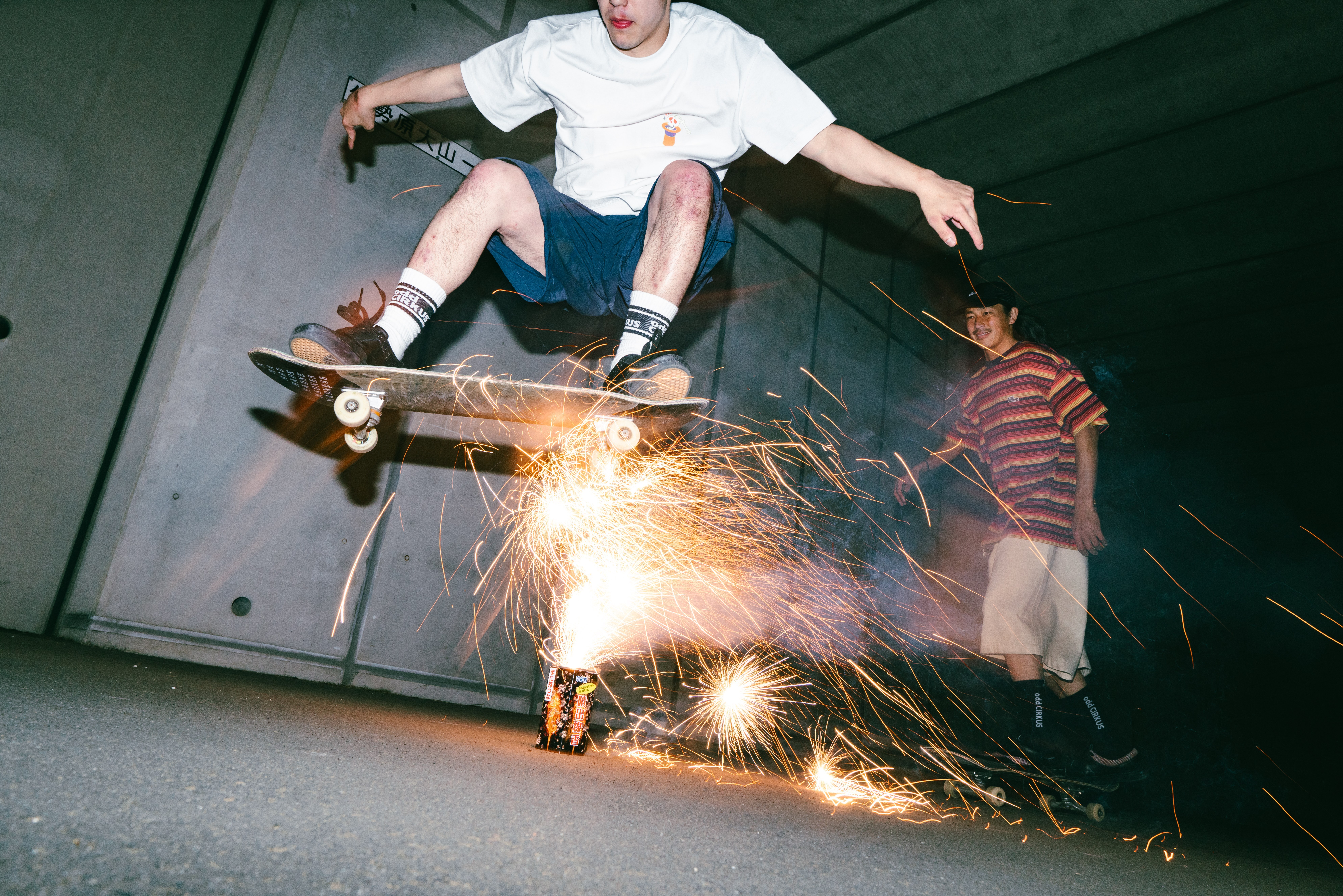 煙火的絢爛就像炙熱燃燒的生命,對滑板的熱愛在黑夜中悄悄點燃引線;在天際綻放的狂歡下,街頭上那些恣意滑行的熱血靈魂永不落幕。在這個盛夏的季節,本次odd CIRKUS以煙火為靈感,推出了ASH HANABI系列。