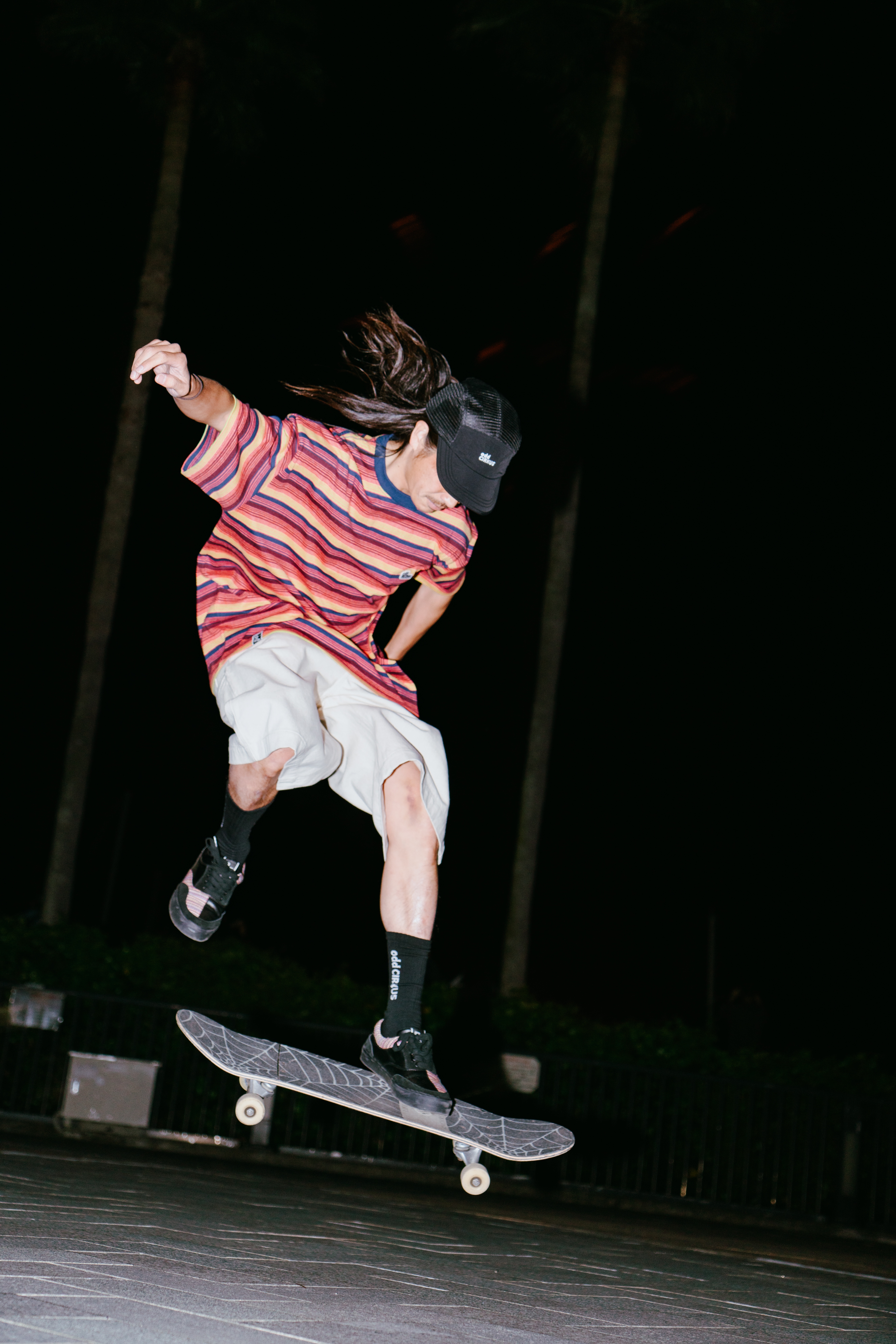 煙火的絢爛就像炙熱燃燒的生命,對滑板的熱愛在黑夜中悄悄點燃引線;在天際綻放的狂歡下,街頭上那些恣意滑行的熱血靈魂永不落幕。在這個盛夏的季節,本次odd CIRKUS以煙火為靈感,推出了ASH HANABI系列。兩雙新品皆以異材質拼接的元素呈現,創新的使用針織、皮革與麂皮等不同的材質拼接,以複雜的工藝嘗試將傳統煙火的元素解構,展現出OC去繁就簡的細節美感。既滿足了滑板人對滑板性能的追求,同時又展現出品牌對匠人精神與街頭態度的傳承。