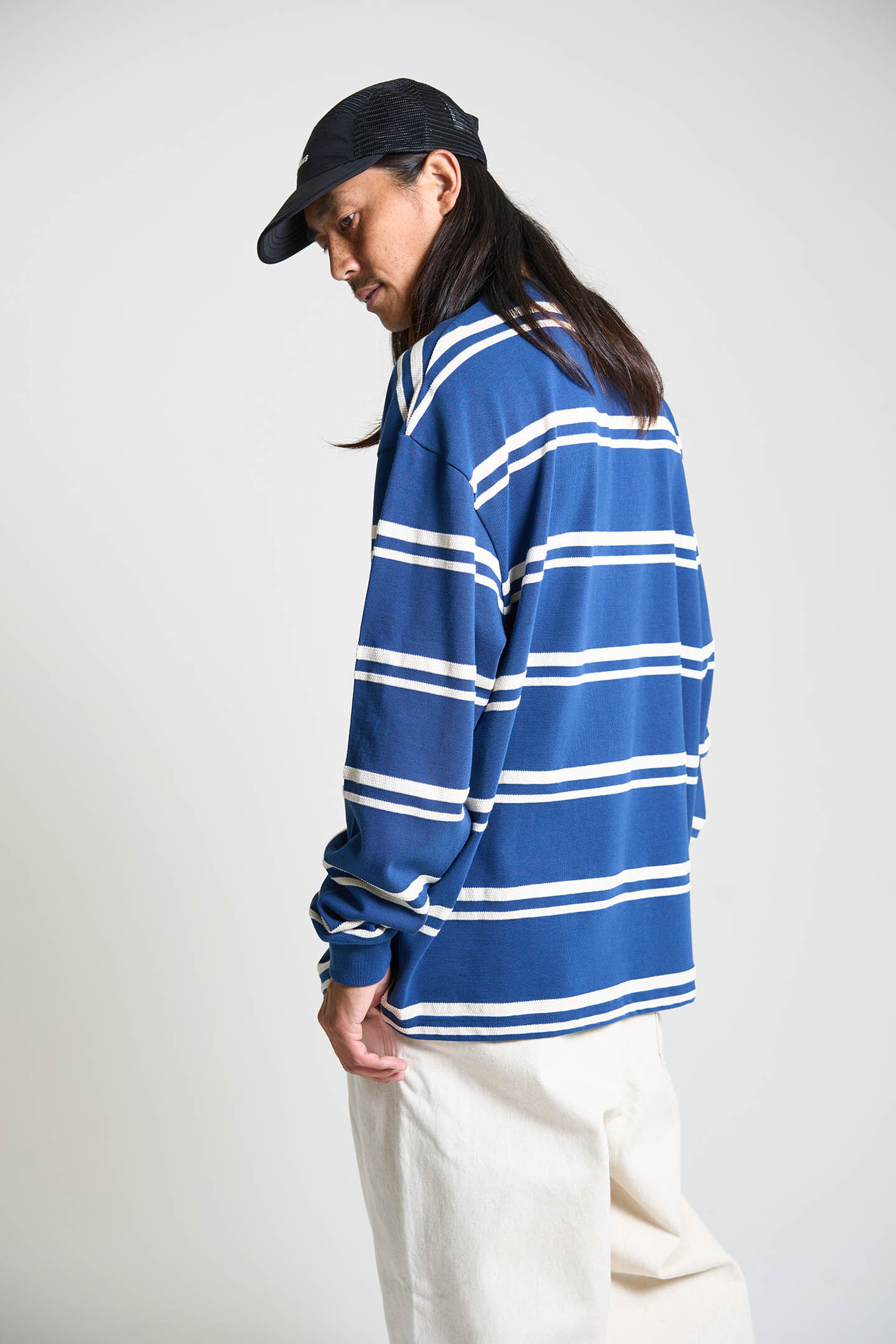 日系圓領條紋長袖T
